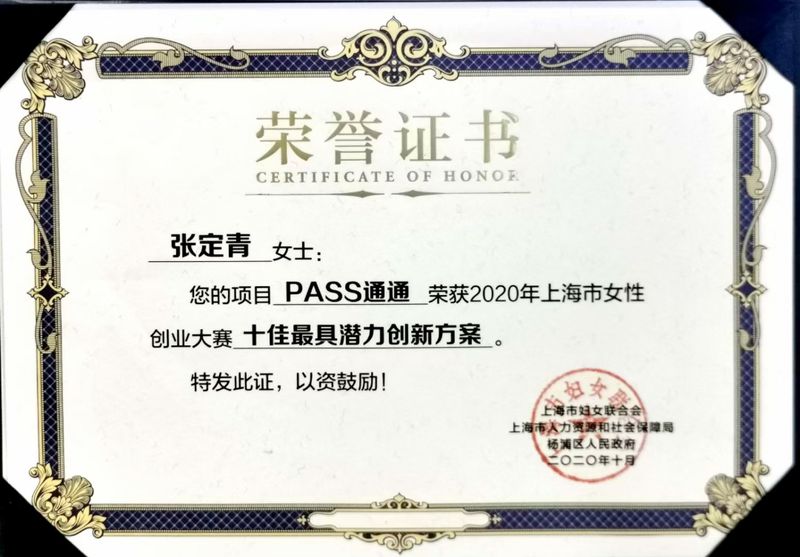 2020年2月26日,张定青创立了上海帕斯通教育科技有限公司,获得了上海市第12届挑战杯的上海市金奖、12届互联网+创新创业大赛的上海市优胜奖、第四届中国创意常年青春创新奖、2020年长三角G60九城女性创业项目大赛十佳项目奖以及上海女性创业大赛的十佳项目称号。