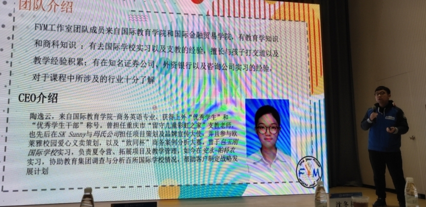 在优秀项目展示环节,苏州大学的刺绣艺术传承保护、上海对外经贸大学的pass通通、浙江外国语学院的羿杰跨境电商、上海外国语大学FYM中小学生财商教育四个项目分别进行了展示,大学生的创新创意让人耳目一新,他们的实践执行能力也让大家纷纷点赞。