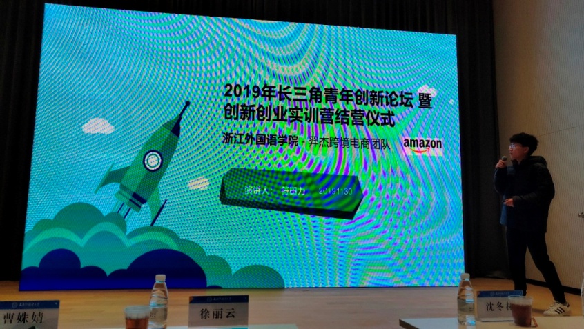在优秀项目展示环节,苏州大学的刺绣艺术传承保护、上海对外经贸大学的pass通通、浙江外国语学院的羿杰跨境电商、上海外国语大学FYM中小学生财商教育四个项目分别进行了展示,大学生的创新创意让人耳目一新,他们的实践执行能力也让大家纷纷点赞。