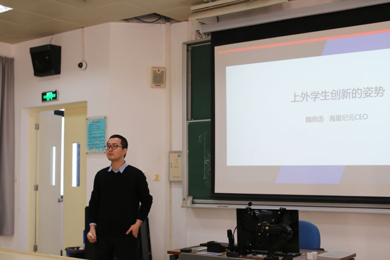 12月13日上午,海星纪元CEO魏晓语老师来到上海外国语大学国际教育学院开设了一场针对上外、尤其是国教学院新生的创新创业讲座。来自教育技术、商务英语、英语教育三个专业的100多名学生参加了此次主题为《上外学生创新的姿势》专题讲座,帮助同学们打开专业创新的视野和思路,指出大学在校生容易进入的创新误区。