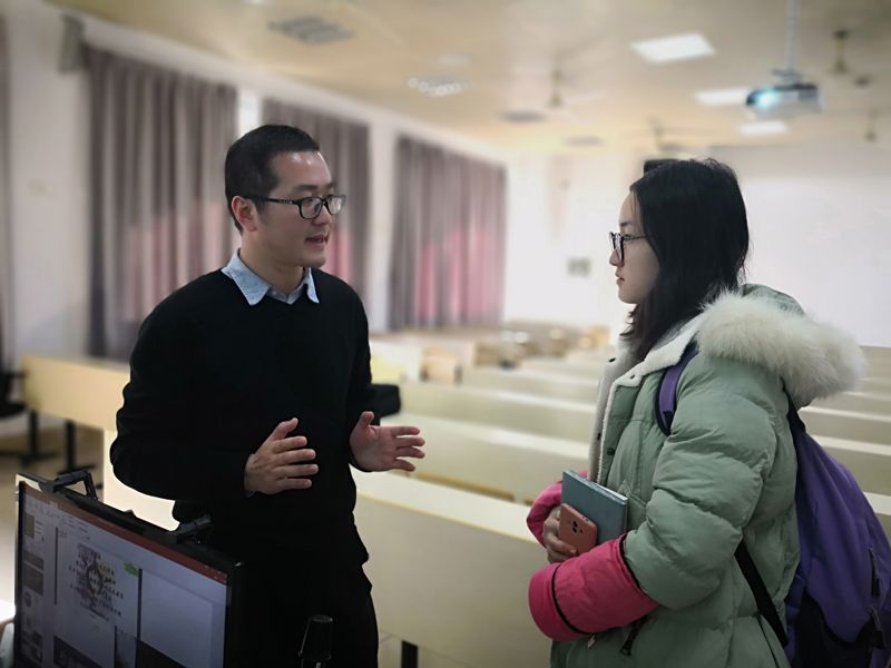 讲座伊始,在主持人李雪莲老师简单介绍了魏晓语老师之后,魏老师以风趣幽默的形式呈现了自己的另一面。这位他人眼中的优秀投资人、创业导师、企业CEO,用极具亲和力的语言简述了他大学以来的多个奇遇、工作经历与所见所闻,一下子拉近了与同学之间的距离,讲座现场不时传出阵阵欢笑与掌声。