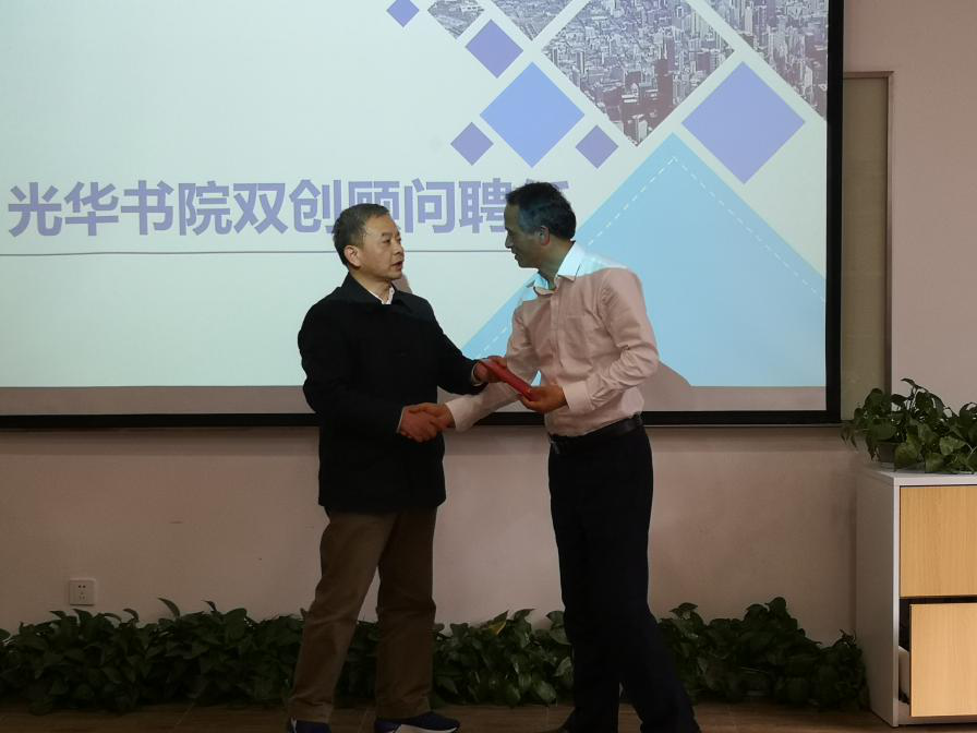 在结营仪式上,华师大光华书院正式聘请海星纪元CEO魏晓语和北大纵横合伙人王利仲为双创导师,聘请阮平章老师为双创顾问并颁发聘书。
