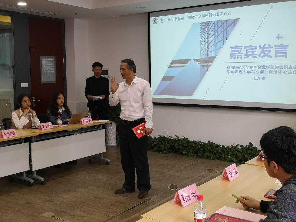 华师大光华书院院长温玉亮老师高度赞扬此次校企合作的成果,并对全力支持此次活动的企业家和老师表示感谢。华师大创新创业学院常务副院长、就业创业促进中心主任阮平章老师介绍了华师大近年来在互联网+大赛和创青春大赛上获得的成绩,鼓励学生从创业中全面培养自己的综合能力。