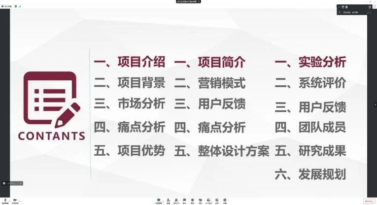 在本次线上辅导中,12组项目团队通过PPT进行汇报。王仕杰老师针对项目的材料修改、汇报技巧及答辩应对等多个关键环节上,为各位项目负责人提出改进意见,帮助学生们更好地完善自己的项目展示。