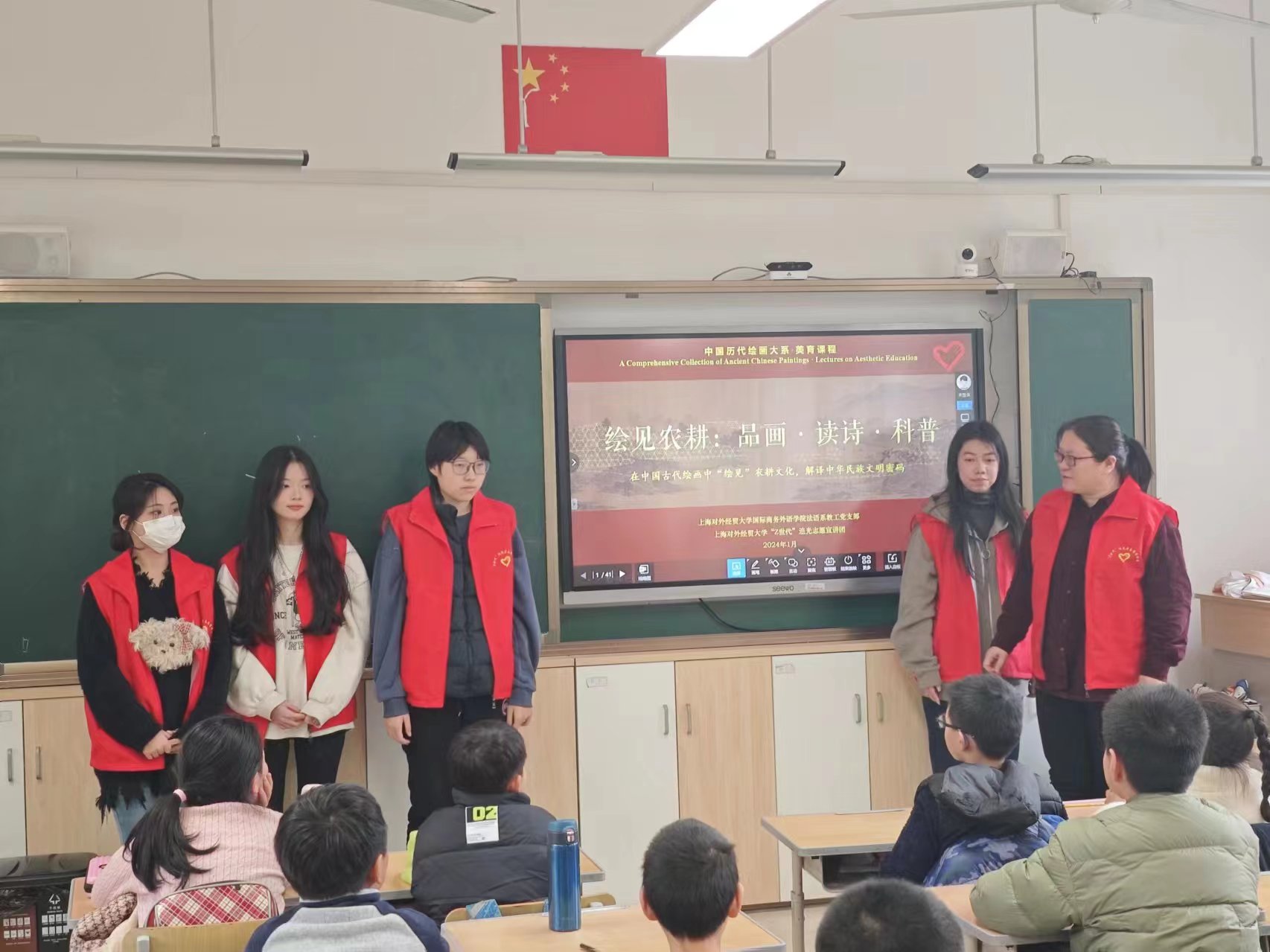 本次爱心寒托班志愿宣讲团的成员们围绕“走近法国美食等特色文化”、“中国历代绘画作品里的故事”两个主要板块展开讲解,为学生们带来新奇有趣的课外文化知识,通过美育课程让学生们更加深入地了解传统文化的独特魅力。