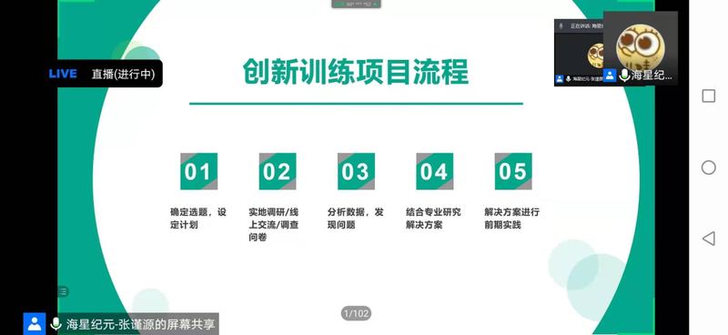 4月1日晚,海星纪元为华东理工大学开展大创训练计划解读及案例剖析课程,此次课程以线上形式展开,由海星纪元CEO魏晓语、海星纪元运营经理王仕杰、海星纪元培训助理张谨源三人主讲,内容涵盖大创训练计划的实施背景及要求、大创训练项目案例剖析、大创训练项目如何实现创新与专创融合三大板块,总计有三百余名不同专业的学生共同参与。