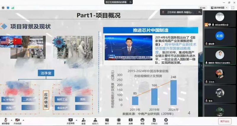 6月16日,海星纪元为南京工业大学的创新创业项目开展线上辅导。上海智昂环保科技有限公司总经理李成、海星纪元CEO魏晓语、海星纪元运营经理王仕杰担任指导老师。共同出席的还有南京工业大学城市建设学院院长助理王瑜、南京工业大学城市建设学院教授蔡浩。本次参加辅导的项目核心业务是为洁净厂房提供环境监测和精准溯源解决方案。项目团队以PPT形式进行项目模拟路演,专家导师们针对项目的商业模式设计思路、合作企业进展、未来发展规划等方面与负责人进行了问答与互动,并对项目的市场分析及用户需求、营销策略、竞对分析等提出了修改建议。此次辅导旨在帮助项目团队全面地理清思路,完善商业计划书的撰写,为后续参加互联网+大赛省赛及创新创业实践做好充分的准备,打下更坚实的基础。