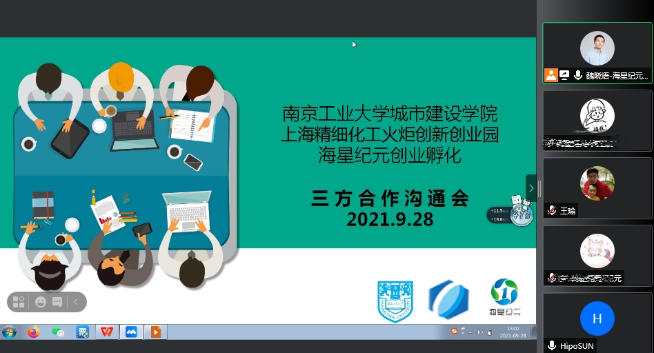 9月28日,海星纪元与上海精细化工火炬创新创业园、南京工业大学城市建设学院举行线上合作沟通会。南工大城建学院院长助理王瑜副教授、上海精细化工火炬创新创业园副总经理孙静、海星纪元CEO魏晓语、海星纪元教研助理刘小芳参加会议。在介绍南工大城建学院、精细化工双创园的发展优势和合作需求之后,海星纪元组织与会方就技术成果孵化与转化、示范工程项目、创新研究型人才培养等合作内容进行了探讨,并计划就沪宁合作开展实质洽谈。海星纪元创业孵化